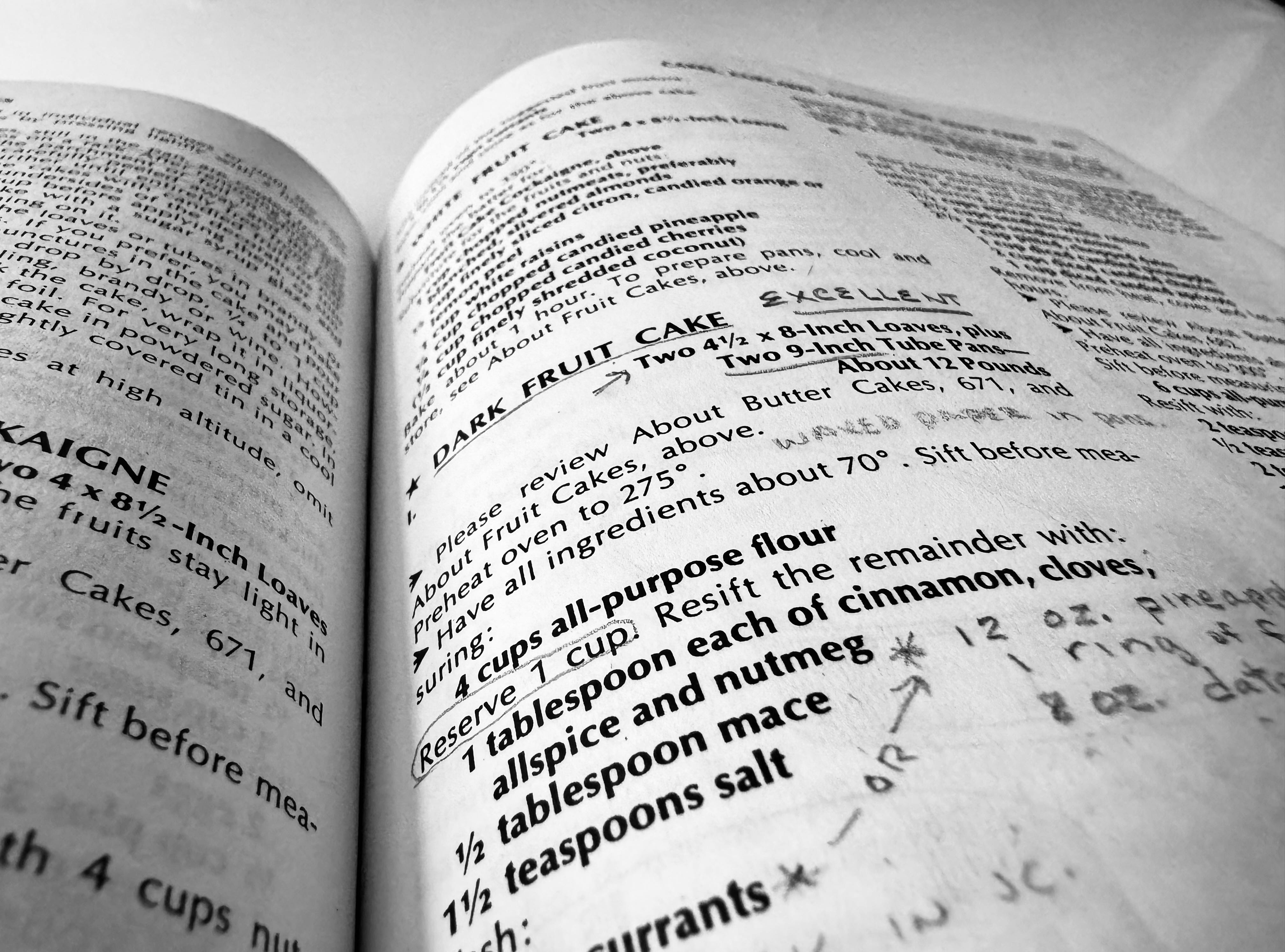 My paternal grandmother’s Joy of Cooking came to me after her death. In his grief, my Granddad chose to remarry and cast aside the objects that reminded him of his first wife. My aunt rescued a few items from the purge and gifted the cookbook to me, her eldest grandchild.