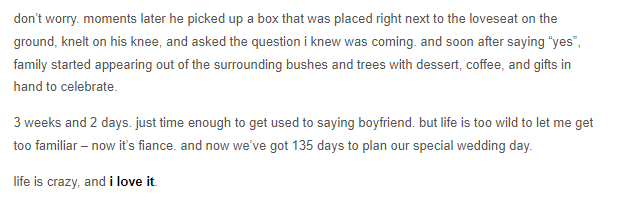 My peers were expected to commit to a spouse after a few months (or weeks) of courtship. Engagements were short—usually 3-4 months. A girl could turn 18, get married, and find herself pregnant with her first child within the space of a year.