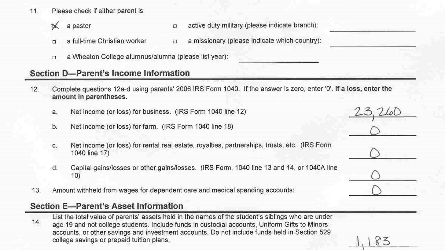 A few months ago, I found my 2007 application for college financial aid. This was my father’s income for a household of 10 people—not exactly the income he projected in public.